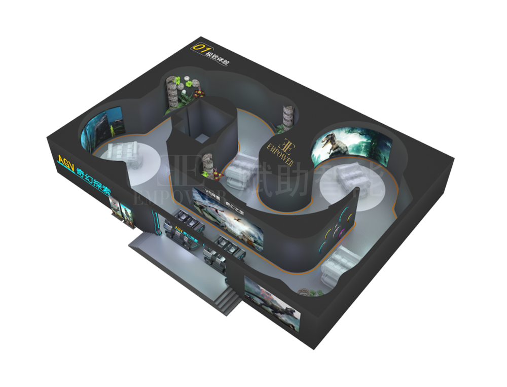5、定制化;可针对项目场地大小,定制使用的体验场景。根据主题定制设备外观及座位数。